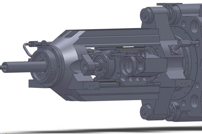 5)整個機(jī)構(gòu)為整體式結(jié)構(gòu),結(jié)構(gòu)緊湊更容易實(shí)現(xiàn)雙動擠壓機(jī)穿孔系統(tǒng)要求的同心度,加工制作相對容易。